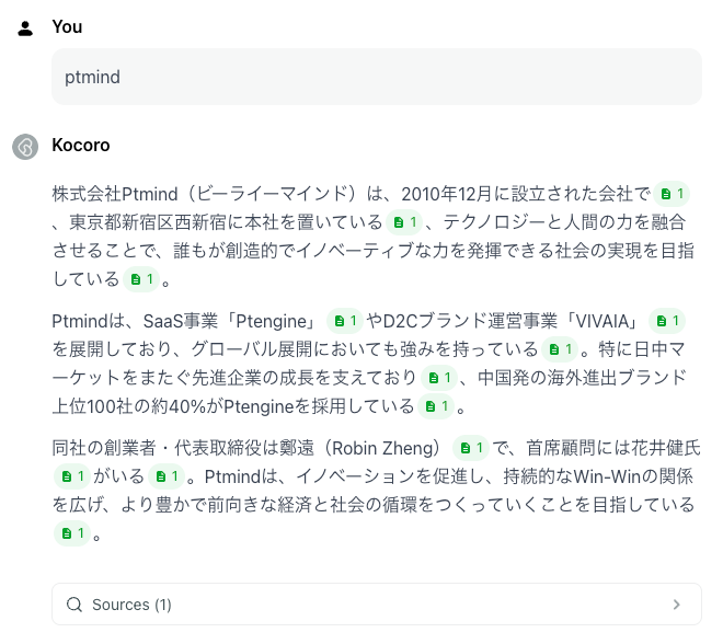 • 回答のソースは追跡可能:AIが生成した回答には、情報源となったドキュメントへのリンクが添付されており、内容の確認やより深い閲覧に便利です。