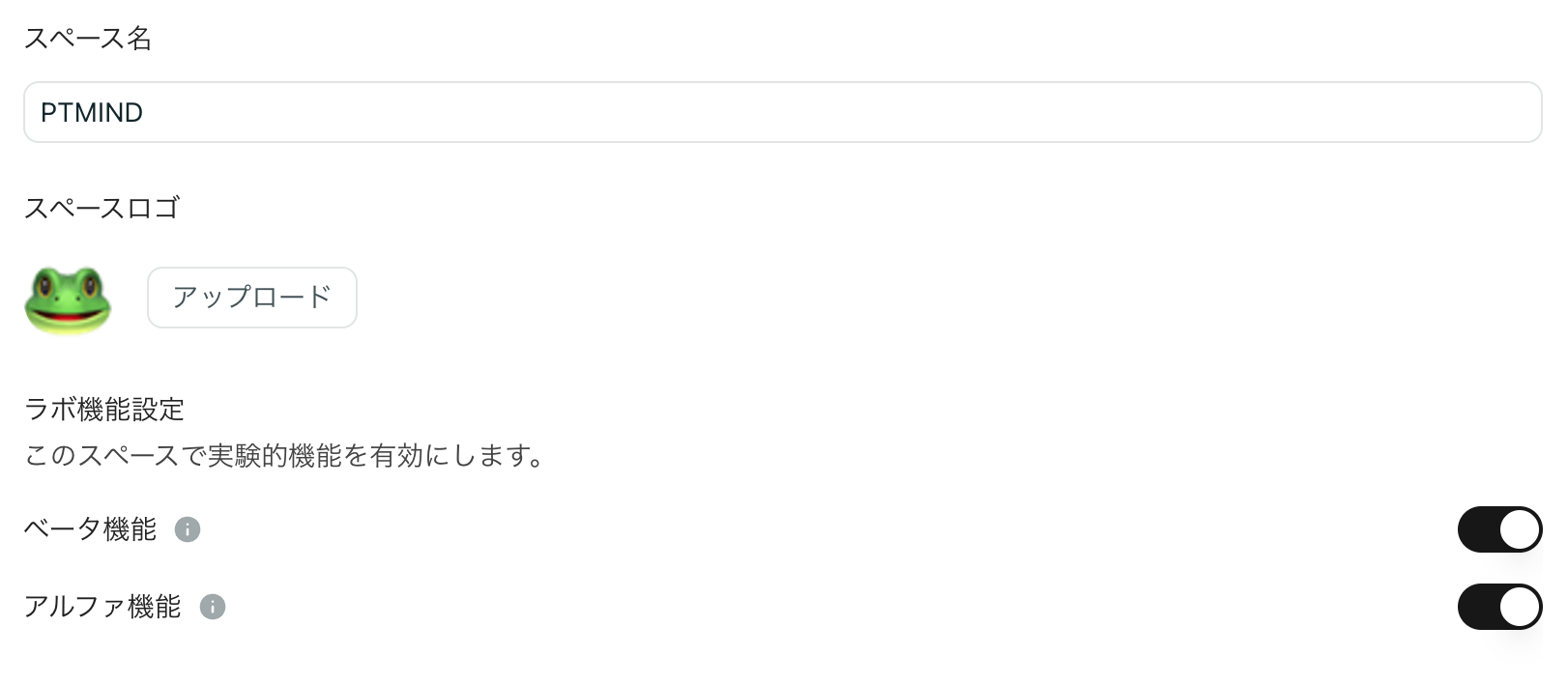 - ワークスペース名: 新メンバーの招待やマルチスペースの切り替え時に分かりやすくなります。