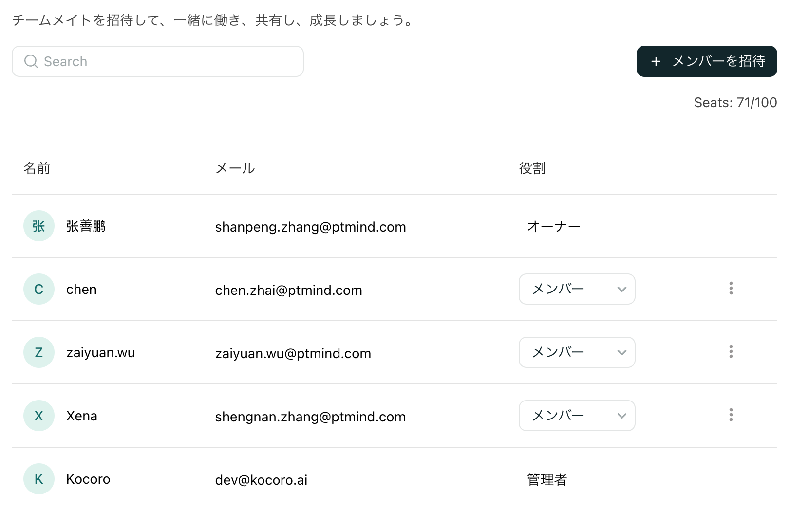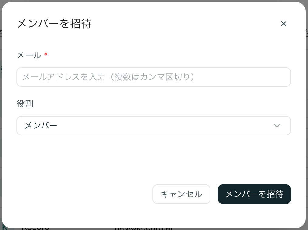 - メンバー招待: 右上の「メンバー招待」ボタンで新メンバー招待開始