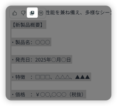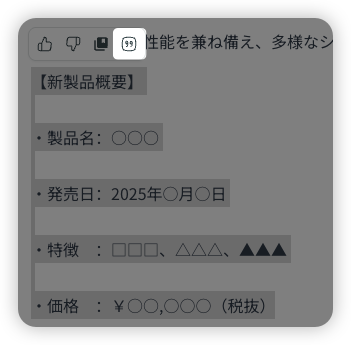 - 自然な文脈の継続:選択した段落を次の会話に引用して、スムーズにやり取りを続けられます。
