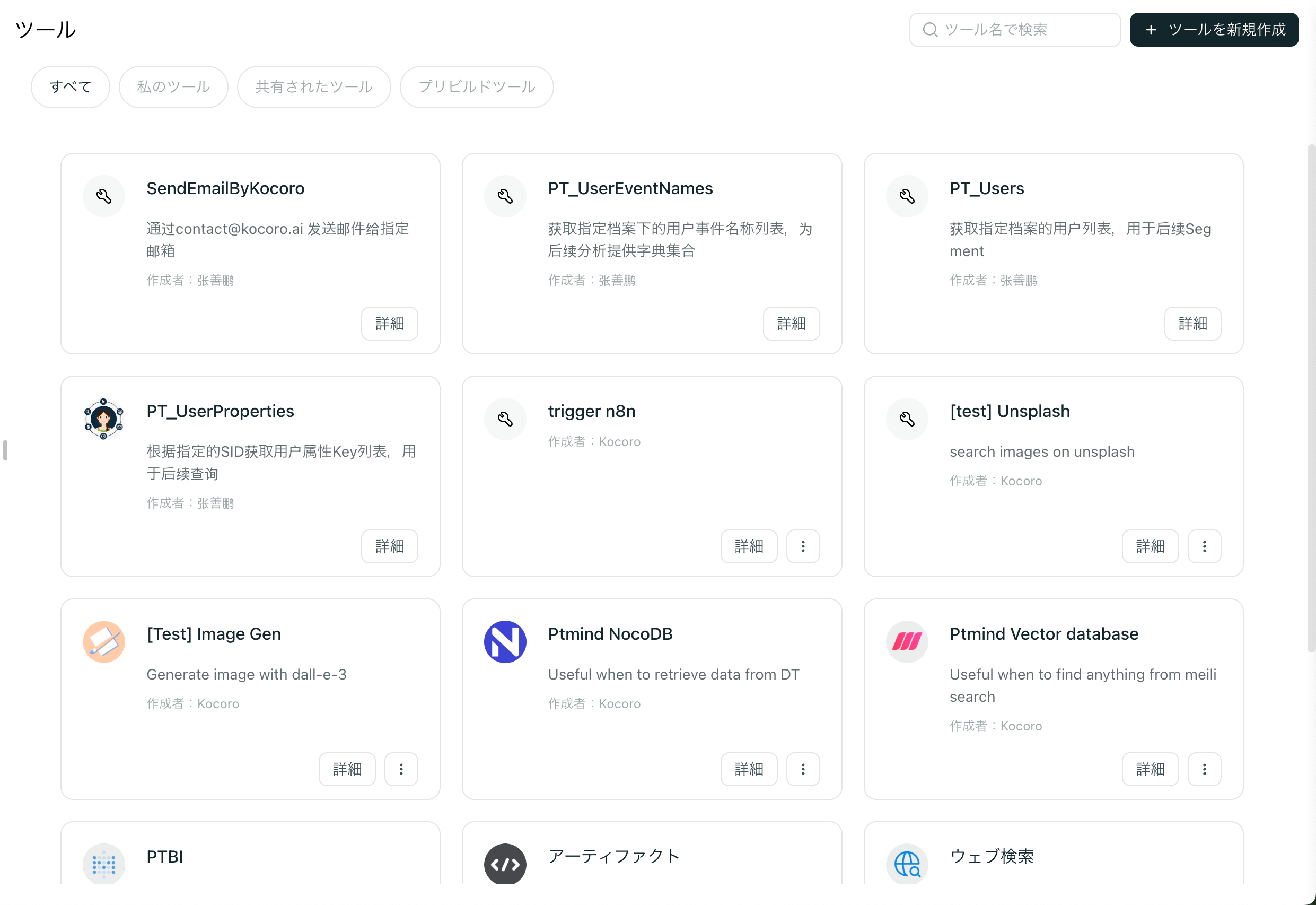 • 詳細表示: ツールカードの「詳細」ボタンをクリックすると、ツールの詳細な説明や技術仕様を確認できます。
