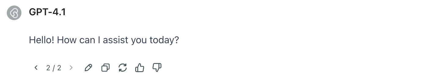 - 版本切换 : 当您点击“重新生成”后,AI 会为您保留之前的回答。您可以通过左右箭头,在多个回答版本之间来回切换和比较,然后选出最好的那一个。