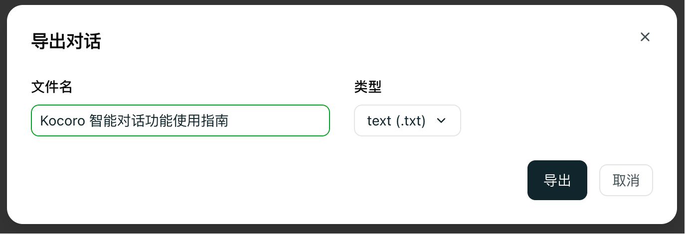 选择 “导出”,您可以将完整的对话记录保存为本地文件,非常适合用于撰写报告、整理资料或进行备份。