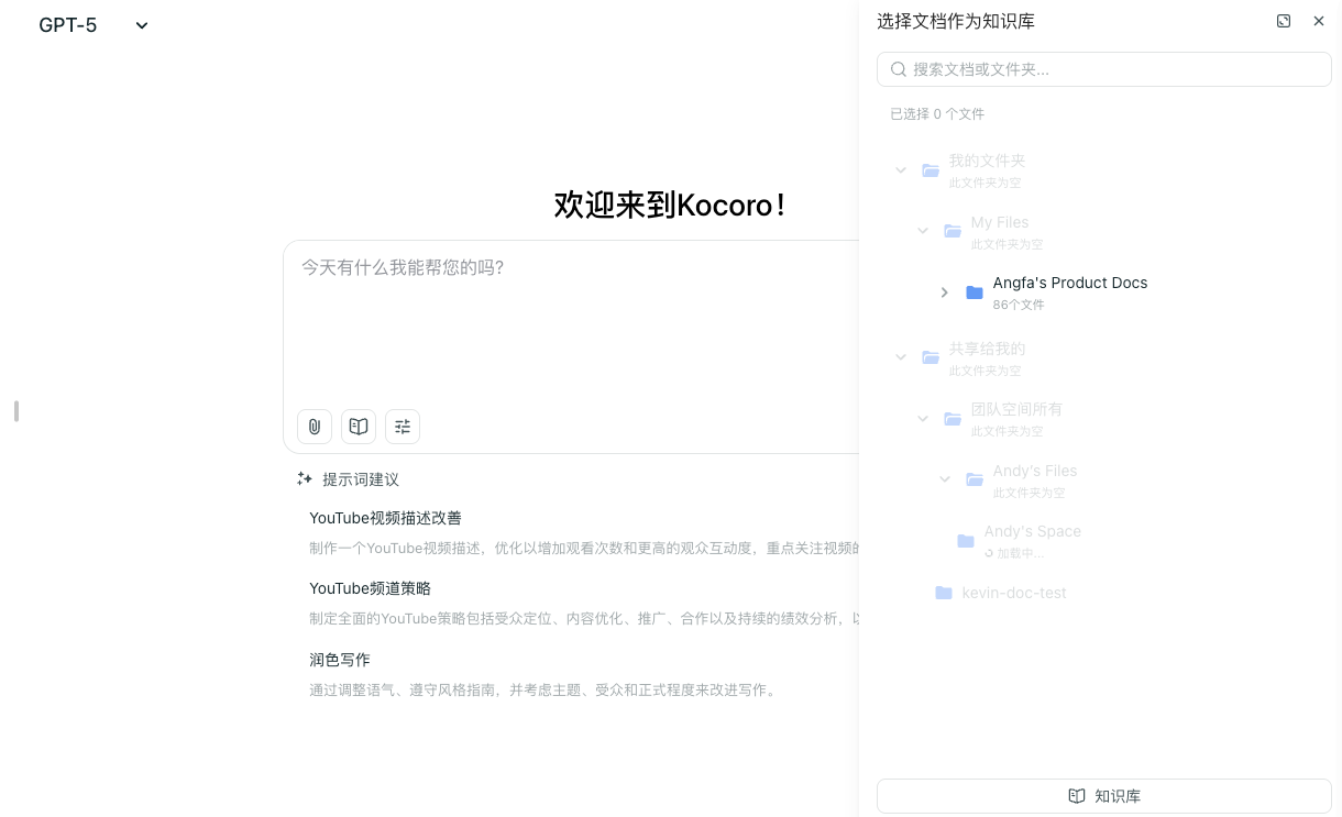 知识库是您公司的“专属大脑”,里面可以存放品牌规范、产品文档、最佳实践、培训材料等内部资料。