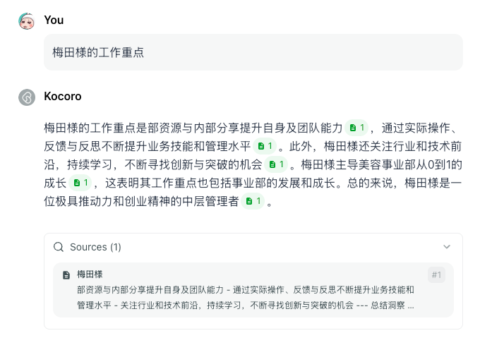 - 降低团队培训成本:新成员可以通过提问,快速熟悉公司流程、产品知识和历史项目,像拥有一位永不离线的导师。