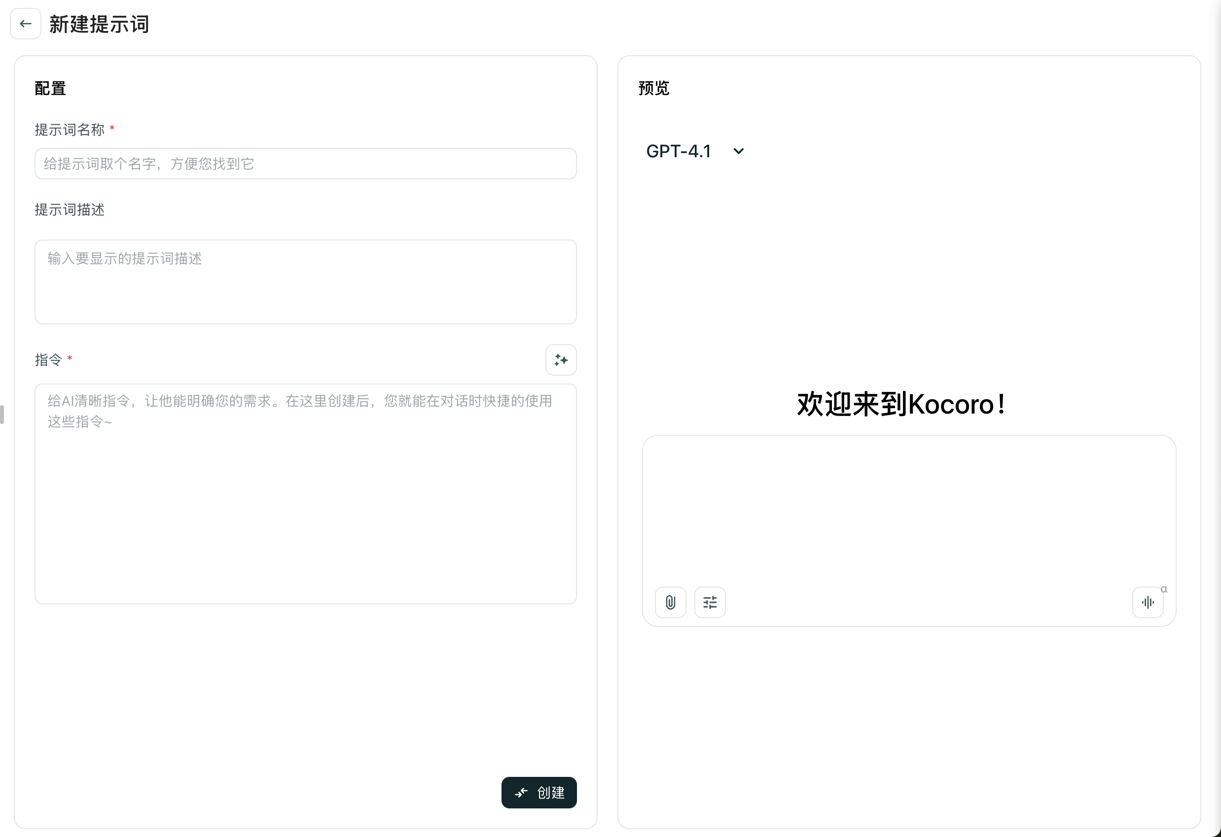 - 预置提示词:Kocoro为您内置了覆盖各类业务场景的优质提示词,开箱即用。