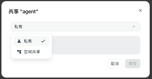 • 两种分享模式:您可以选择将资源设为“私有”,仅自己可见;或设为“空间共享”,与团队成员协同使用。