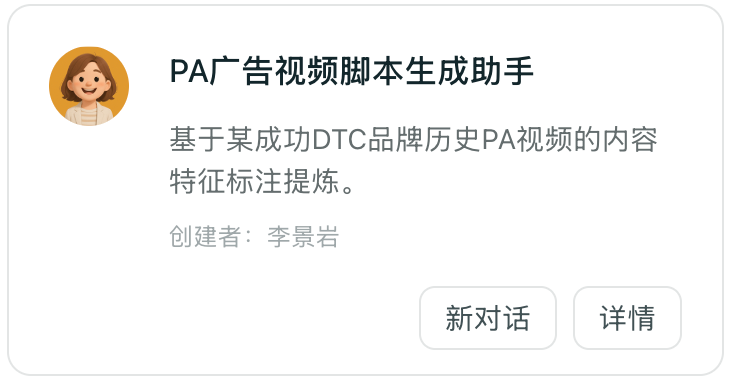 • 团队能力提升:当您创建了一个效果显著的“营销文案生成”智能体时,可以将其分享给整个市场部,让每位成员都能快速生成高质量文案。